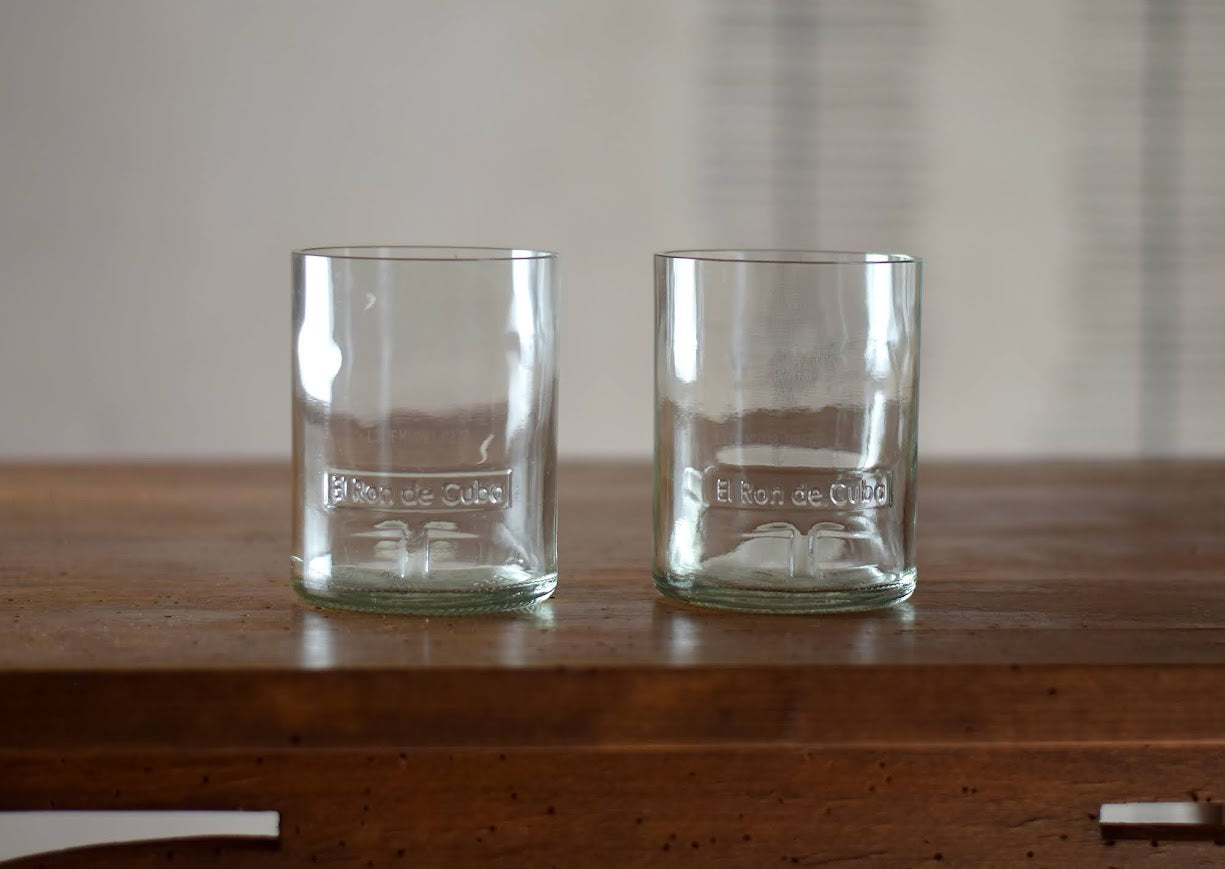 Rendi la tua tavola unica con il bicchiere RUHM, un bicchiere artigianale ricavato da vere bottiglie di Rum, in collaborazione con Zan Zan Glass.