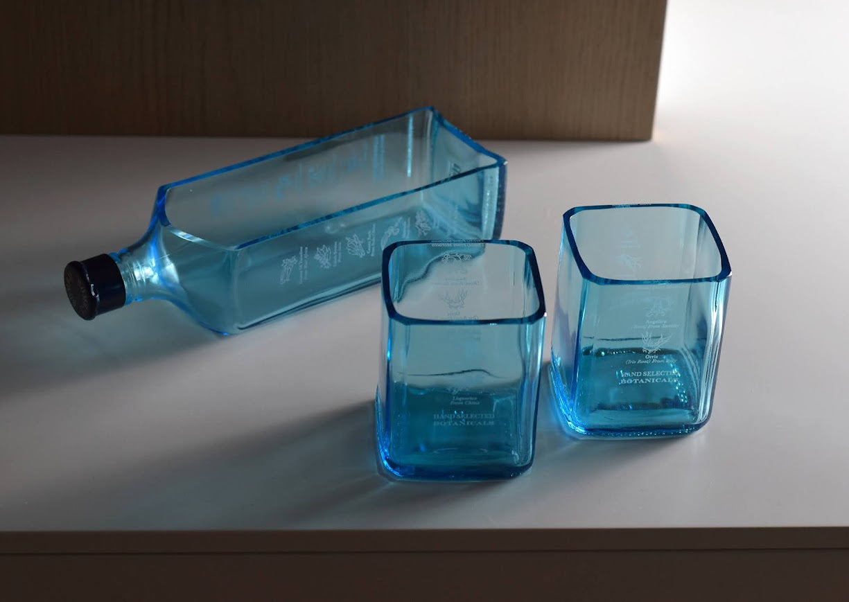 Rendi la tua tavola unica con IL SET APERITIVO GIN BOMBAY, bicchieri e bottiglia ricavati da vere bottiglie di GIN BOMBAY, in collaborazione con Zan Zan Glass.