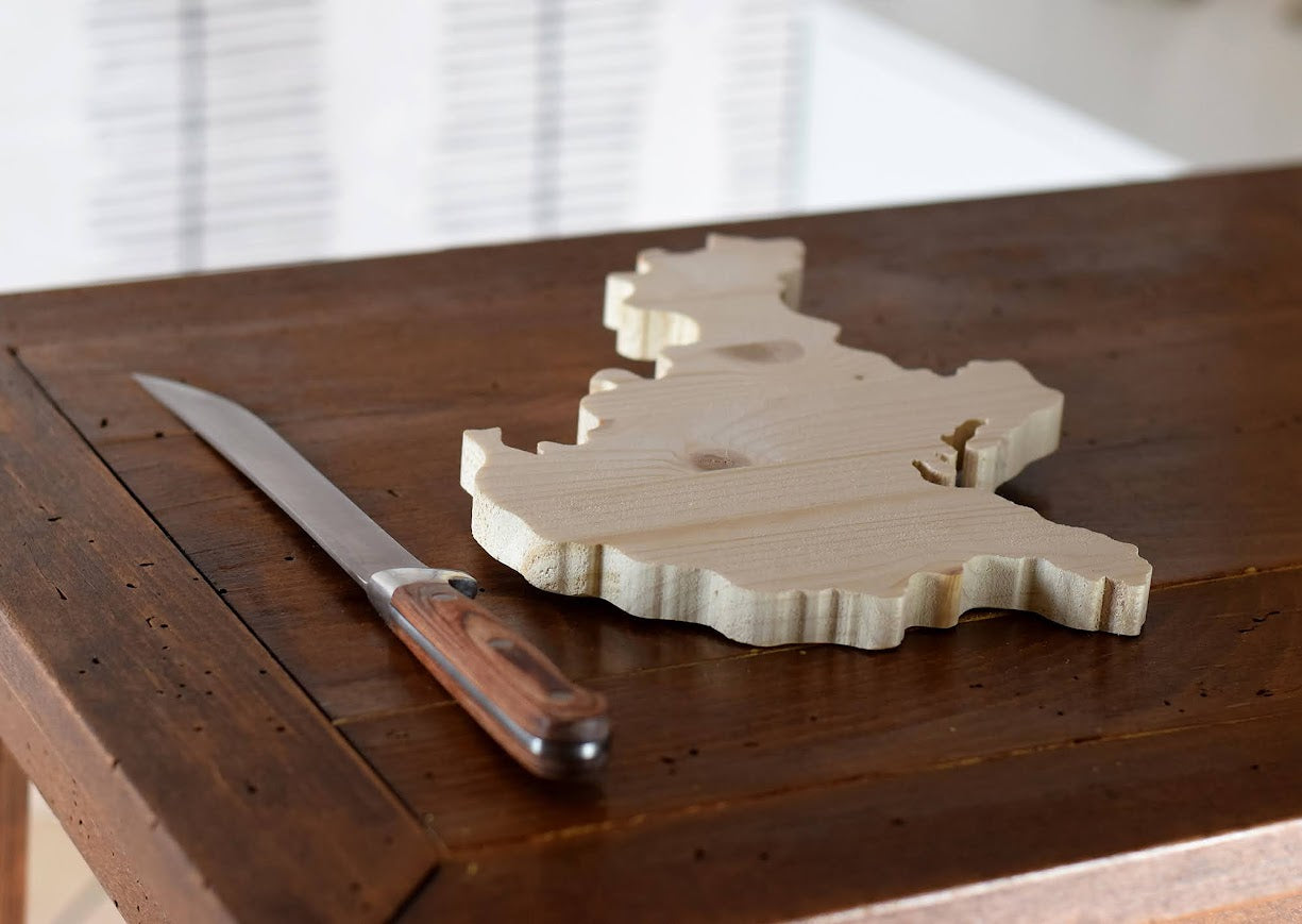 Scopri la praticità e l’eleganza del Veneto con TAJER VENETO, il tagliere artigianale in legno di abete realizzato a mano e sagomato con la classica forma della regione Veneto.